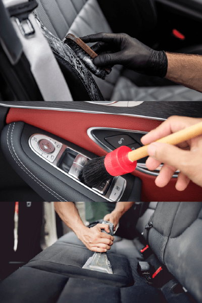 Complete interior shampooing of all the carpet and mats. Leather treatment and a complete deep cleaning.